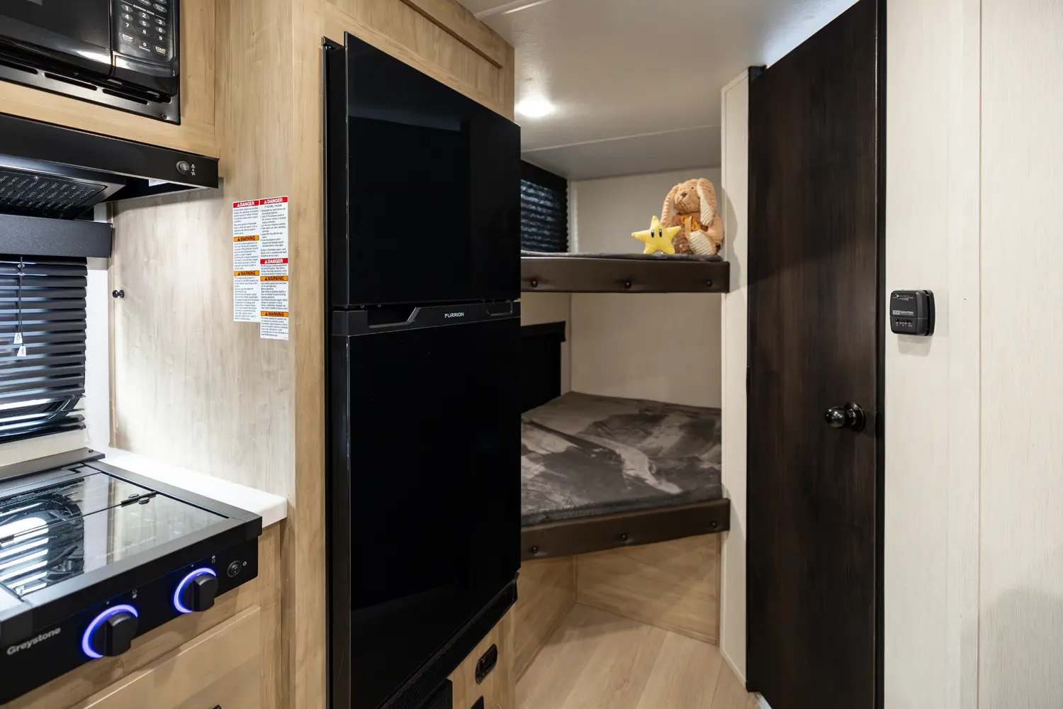 • Blackout Glass, Safety Slam, Friction Hinge Entry Door with Window and Shade Prep (N/A on LP models)